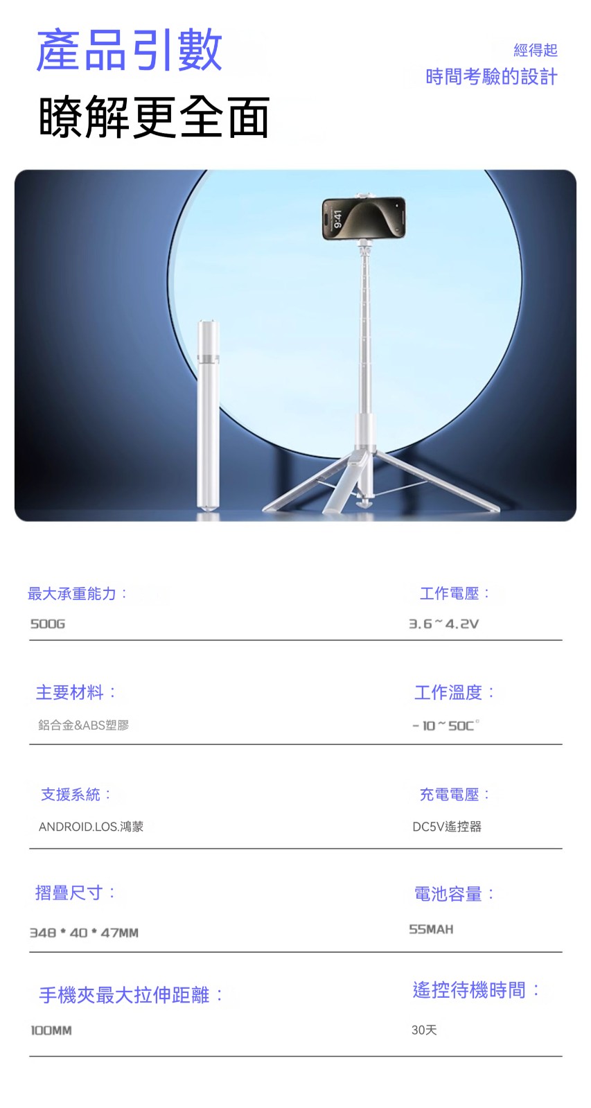 【2025熱銷新款】自動彈開手機自拍桿落地三腳架 360度旋轉拍照神器|便攜旅遊手持穩定器|直播全套設備通用|随心桿x96 台灣現貨